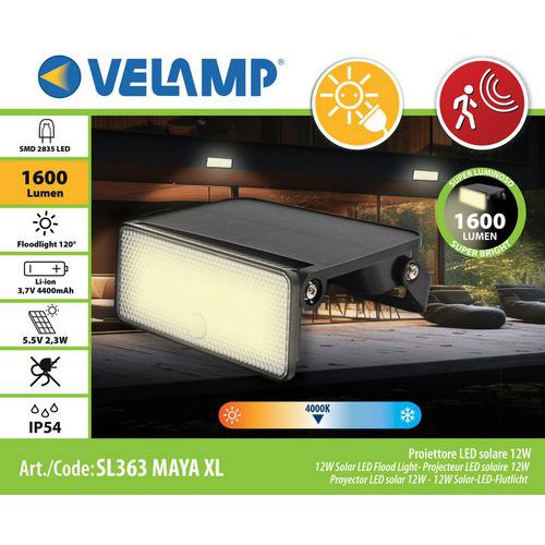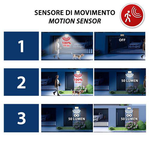 Faro a energia solare con sensore di movimento, Flusso luminoso: 1600 lm