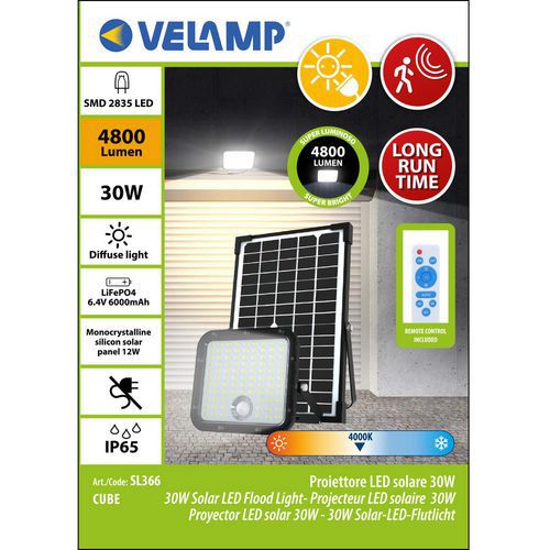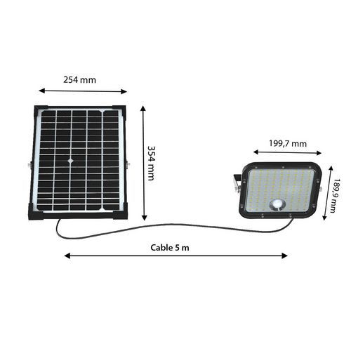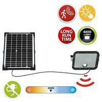 Faro a led a energia solare con sensore movimento+pannello, Flusso luminoso: 4800 lm, Potenza: 30 W