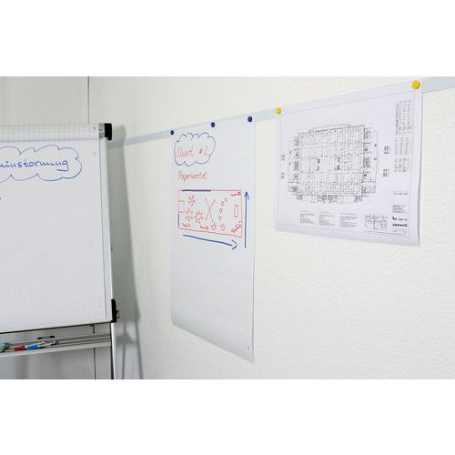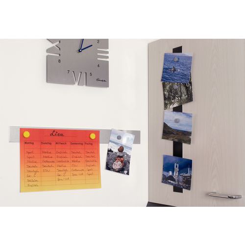 Striscia magnetica e autoadesiva per mettere in evidenza le vostre informazioni. Per il fissaggio di documenti con magneti. Può essere fissata sia alla parete sia negli angoli. Si taglia facilmente alla lunghezza desiderata tramite forbici tradizionali. Il rivestimento in schiuma adesiva compensa le irregolarità della parete, lasciando residui.