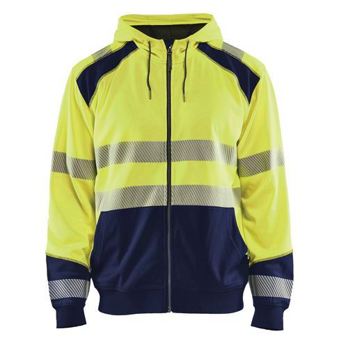 Felpa con cappuccio e zip ad alta visibilità giallo fluorescente/blu marino