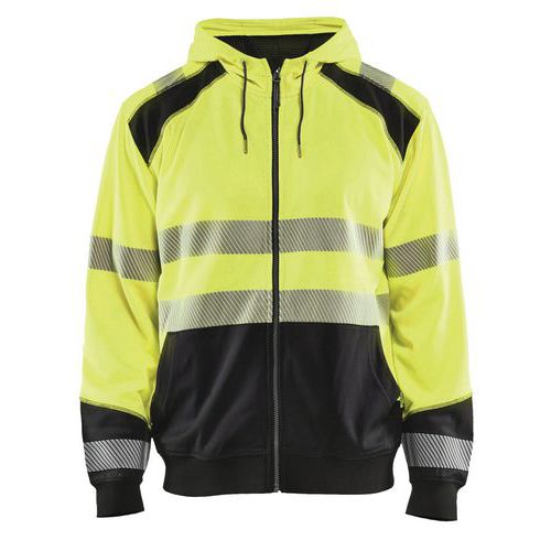 Felpa con cappuccio e zip ad alta visibilità giallo fluorescente/nero
