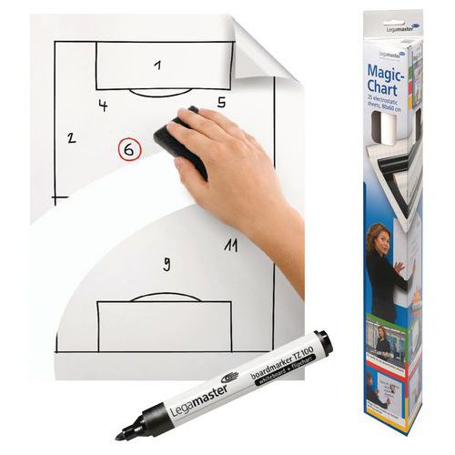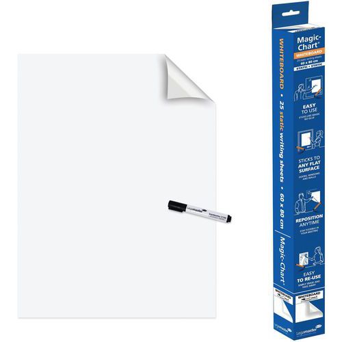 | Descrizione | Fogli elettrostatici bianchi Magic Chart, Superficie di scrittura: Carta, Altezza: 80 cm, Magnetico: no |
