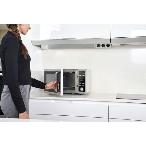 - Dotato di 3 funzioni: scongelamento, convezione e grill.