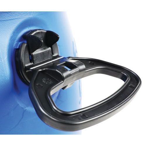 Fusto cilindrico in PEhd per lo stoccaggio e il trasporto sicuri. Coperchio con guarnizione e cerchio in acciaio galvanizzato a leva piombabile. Omologazione ONU per il trasporto di materie pericolose. Coperchio nero con guarnizione EPDM. I modelli da 120 L e 200 L non sono dotati di maniglie.