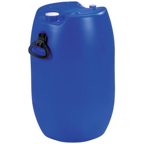 Fusto per stoccaggio sicuro con 2 aperture con tappo. Fusto a presa perfetta con 2 impugnature laterali. Realizzato in Francia Norme UN Transport