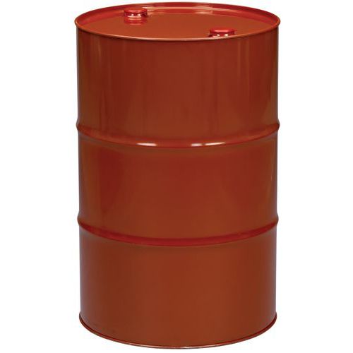 Fusto in acciaio con triplice nervatura e tappi incapsulabili. Interno grezzo: compatibile con gli oli motore e idraulici. Norme UN Transport