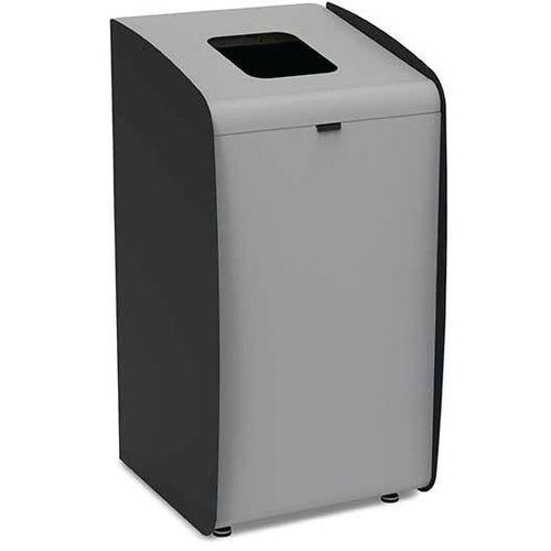 Struttura in metallo verniciato, versione con profili laterali e sticker colorati, sistema reggisacco integrato, apertura mediante sportello superiore, ideale per creare isole ecologiche, in opzione, kit quattro ruote Ø 40 mm (2 ruote con freno), in opzione, etichette pre-fustellate in vinile per la differenziata.