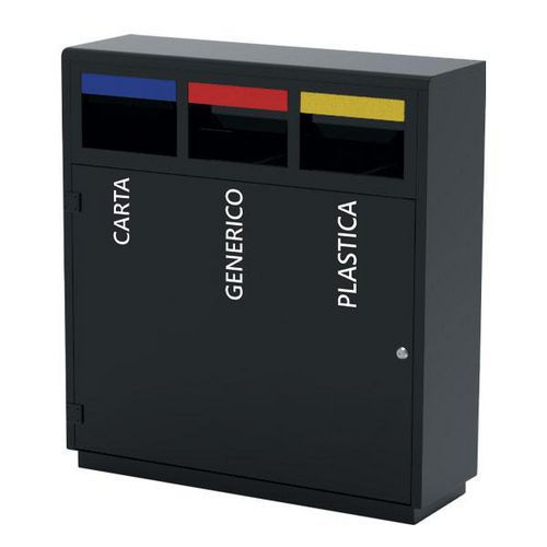 | Descrizione | Gettacarte per raccolta differenziata, Capacità: 120 L, Materiale: Acciaio, Colore: Nero, Altezza: 1094 mm |