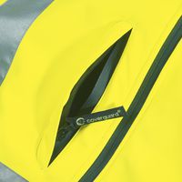 Chiusura con cerniera fino al collo. Polsini regolabili con fasce adesive. Protezione reni. Giacca con maniche rimovibili. Molte tasche. Chiusura tramite elastico con stopper. Strisce retroriflettenti 3M™ Scotchlite™. Collo diritto foderato. CE