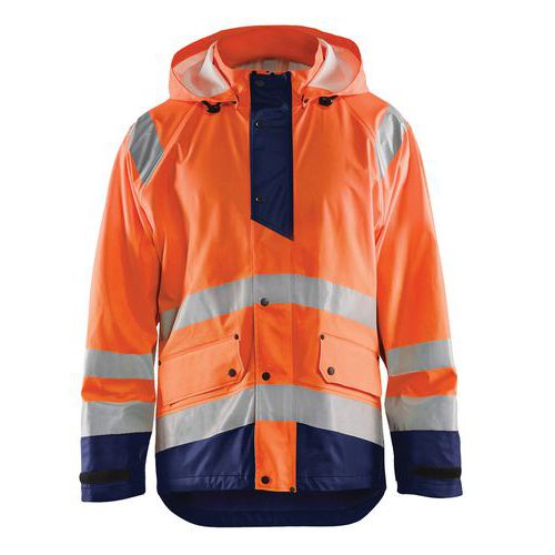 Giacca da pioggia ad alta visibilità livello 1 arancione fluo/blu marino, fondo regolabile