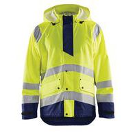 Giacca da pioggia ad alta visibilità livello 1 giallo fluo/blu marino, fondo regolabile