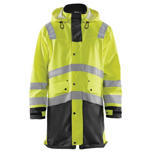 Giacca antipioggia HV livello 3 giallo/nero fluorescente, chiusura robusta