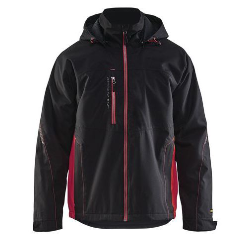 - Qualità: 1977 100% poliestere, laminato oxford Impermeabile, antivento, traspirante 200 g/m2 WABTECH® - Idrorepellente e traspirante. Impermeabile. Tessuto in poliestere fluorescente con finitura opaca in Poliuretano (PU).Colore: Nero/Rosso Caratteristiche: