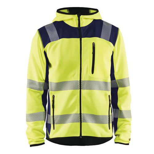 Giacca in maglia con cappuccio ad alta visibilità giallo fluorescente/blu marino
