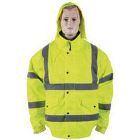 Giacca ad alta visibilità con fodera in pile giallo/navy e strisce retroriflettenti. Presenta una fodera imbottita per tenervi al caldo contro il freddo.