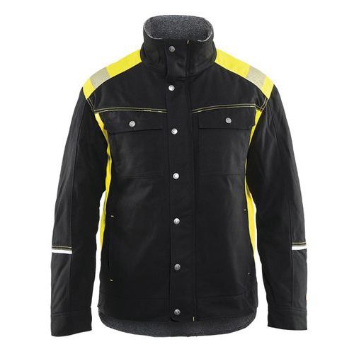Foderato Maniche prepiegate Interno: fodera trapuntata nelle maniche Fodera in pile Dettagli: Collo alto Parte ad alta visibilità per una maggiore visibilità Tasche: tasche sul petto con patta e chiusura a bottone Tasche anteriori foderate in pile Tasche interne con tasca per il telefono Chiusura fronte: Zip in plastica coprente su un lato Patta con chiusura a bottoni Visibilità: impugnature profilate sulle spalle, maniglia e lato inferiore della schiena Finitura: Estesa sulla parte inferiore della schiena Orlo regolabile con bottone Fondo manica regolabile con bottoni a pressione Certificazione: Non certificato dall'alta visibilità