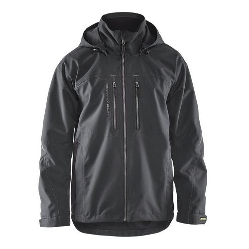 Materiale traspirante, antivento e impermeabile, pelle nastrata Interno: tessuto in Airmesh Tessuto leggero Trapuntata sul manico Dettagli: Cappuccio rimovibile e regolabile con tessuto in rete Etichetta tessuta sulla tasca posteriore Stampa sulla manica Stampa del logo sul petto Tasche: Tasche sul petto con cerniera Tasche Precedentemente con la copertina: Zip unidirezionale in plastica Visibilità: Stampigliatura su maniglia e cappuccio Finitura: Oro regolabile con cursore Maniglia interna con maniglia per la copertina Maniglia a norma Certificazione: EN 343, Classe 3.2 Non certificata dall'alta visibilità