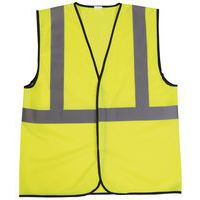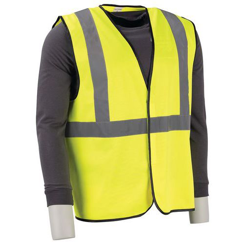 Gilet di sicurezza alta visibilità completamente in poliestere. Le 2 fasce catarifrangenti cucite garantiscono la visibilità dell'utente. Chiusura a velcro.