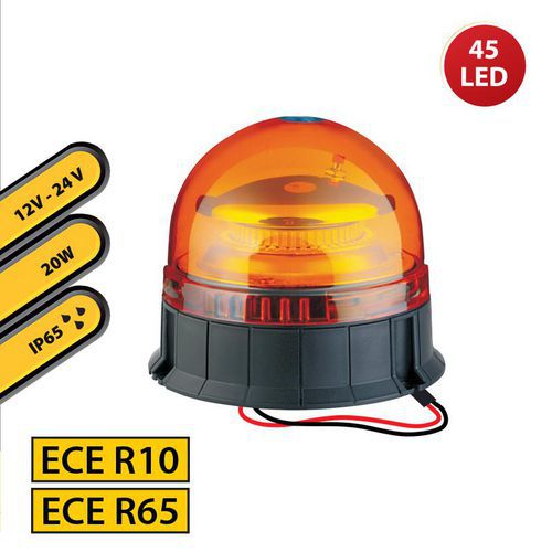 Girofaro a led 12/24V con led lampeggiante che emette una luce potente a 360 gradi, 2 modalità di lampeggio differenti e 45 led ad alta intensità.