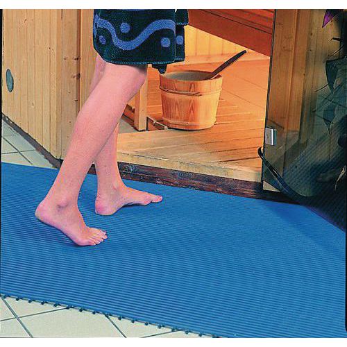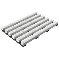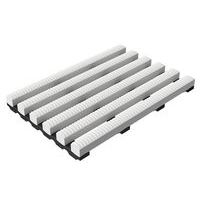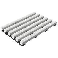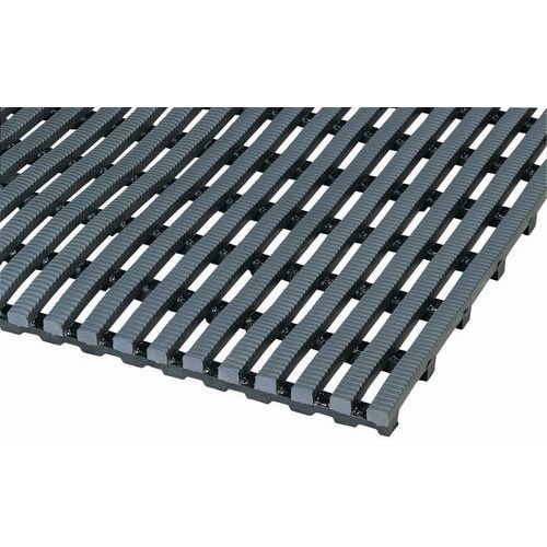 Metro lineare di griglia antiscivolo per spazi pubblici. Igienico con materiale non poroso e additivi antimicrobici e antifungini. Design innovativo per un drenaggio ultra efficace dell'acqua. Griglia facile da tagliare, installare e rimuovere. Rilievo antiscivolo per un'eccellente stabilità.