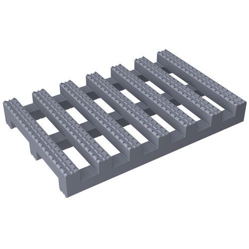 Importante: griglia certificata antiscivolo (DIN 51130: V10). Classificazione di reazione al fuoco Cfl-S1-EN ISO 13501-1:2007. Resistente alla maggior parte di acidi, alcalini e olio. Realizzata per funzionare a temperature da -23°C a + 60°C, stabilità in presenza di vento, inclusi venti fino a 96 km/h (150 km/h in piano secondo i test in laboratorio).