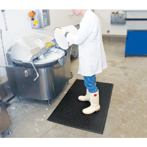 Tappeto forato per facilitare il drenaggio e mantenere la superficie pulita.