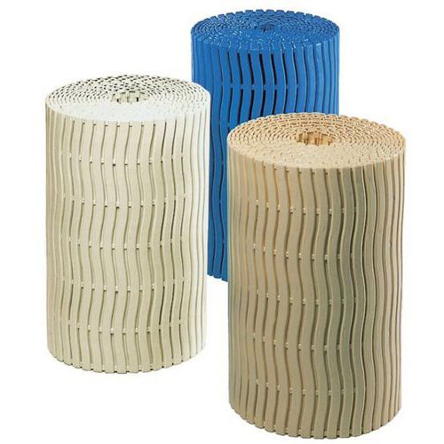 Tappeto igienico, resistente, per creare un ambiente sano e sicuro nelle vostre docce. Antiscivolo, offre una superficie comoda per camminare a piedi nudi. Superficie drenante: niente acqua stagnante. Sensazione piacevole e calda sotto i piedi. Manutenzione semplice con getto d'acqua. Design a forma di onda in polietilene trattato antibatterico. Previene la proliferazione di funghi e batteri. Resistente ai raggi UV.