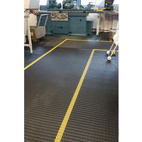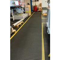 Griglia morbida antiscivolo e antifatica al metro lineare. Eccellente drenaggio di liquidi e piccoli detriti. Bordo giallo smussato per facilitare il passaggio. Superficie antiscivolo tipo punta di diamante. Aumento della produttività e stanchezza ridotta.