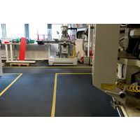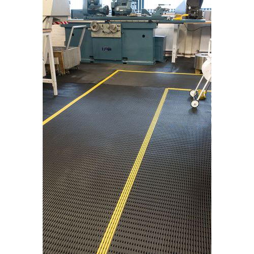 Griglia morbida antiscivolo e antifatica in rotolo. Bordo giallo smussato per facilitare il passaggio. Eccellente drenaggio di liquidi e piccoli detriti. Superficie antiscivolo tipo punta di diamante. Aumento della produttività e stanchezza ridotta.