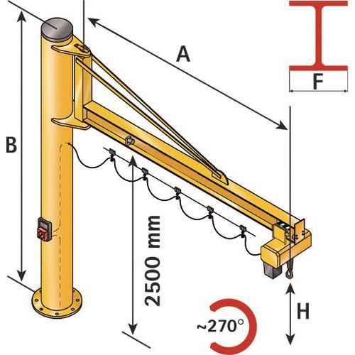 Gru a colonna con braccio triangolare - Portata 500 kg