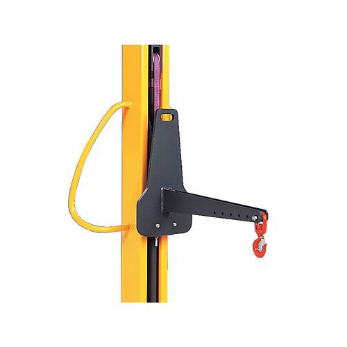 Dotata di un gancio girevole a posizione regolabile e di un sistema idraulico anticaduta che blocca la posizione del braccio in caso di rottura. Realizzato in Francia CE Portata (kg) : 500