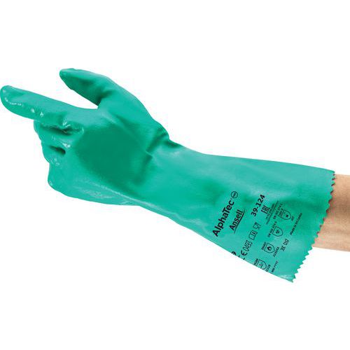 | Descrizione | Guanti di protezione chimica Alphatec®, Materiale: Nitrile, Colore: Verde, Guanto taglia: 8, Fodera |