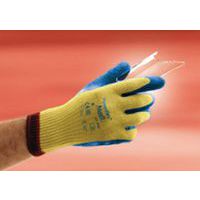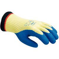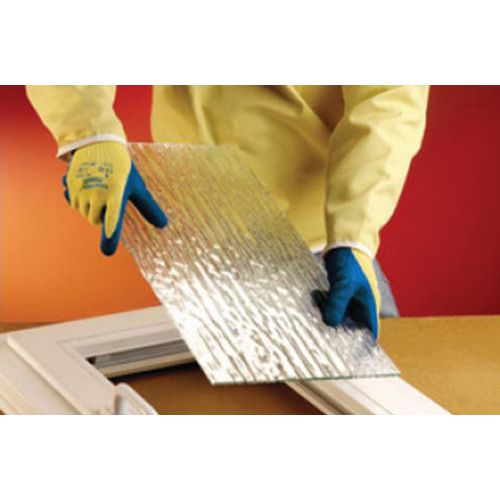La combinazione di rivestimento in lattice di gomma naturale e fodera in tessuto tricot in Kevlar® consente a questi guanti resistenti all'abrasione di soddisfare i requisiti delle norme ANSI A2/EN ISO C in materia di resistenza al taglio per consentire ai lavoratori di maneggiare nella massima sicurezza il vetro, il metallo e i materiali plastici.