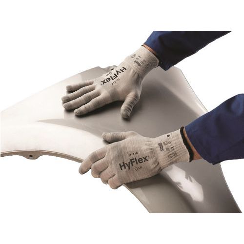 Senza silicone, questi guanti HyFlex impediscono la trasmissione di contaminanti sul metallo prima della verniciatura.