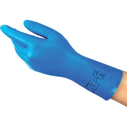 I guanti DPI AlphaTec® 37-310 sono dotati di una protezione chimica EN 374 tipo B, contro gli acidi leggeri, i grassi, gli oli e i liquidi.