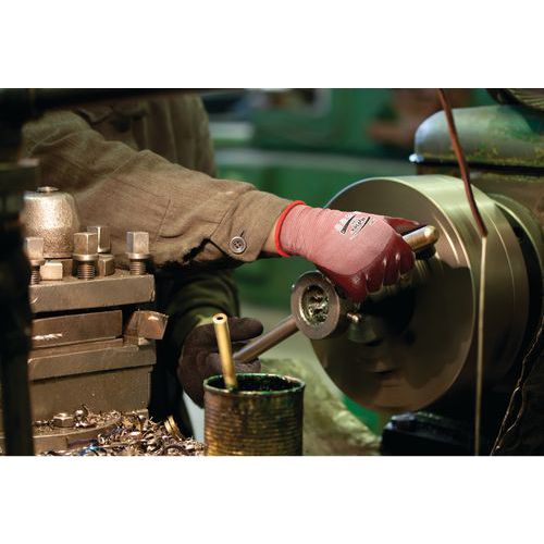 Il rivestimento di questi guanti HyFlex® su tre quarti di superficie e il trattamento ANSELL GRIP™ consentono una migliore presa con uno sforzo ridotto.