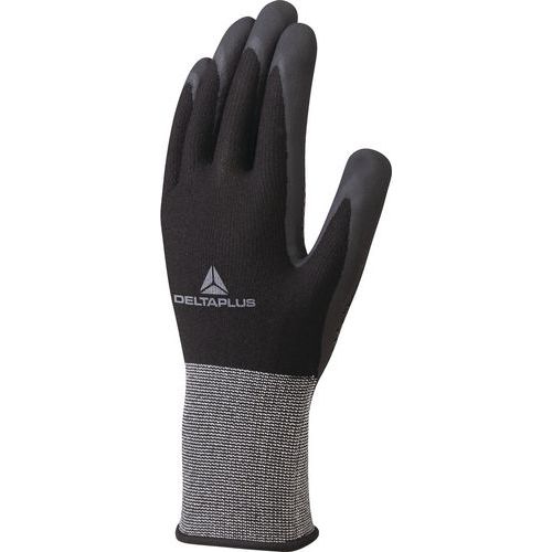 - Rivestimento in nitrile su palmo e punta delle dita.