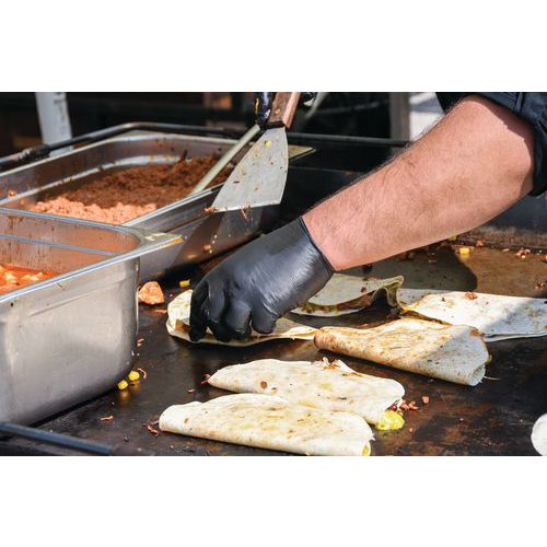 Guanti a uso medico in nitrile nero per una protezione delle mani contro lo sporco e una presa superiore.