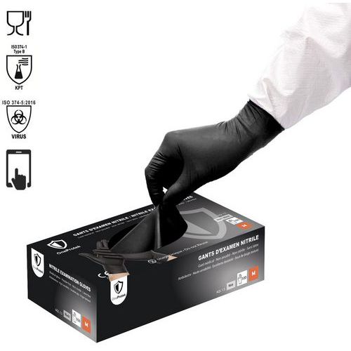 - Guanti in nitrile nero OneProtek per ambidestri.
