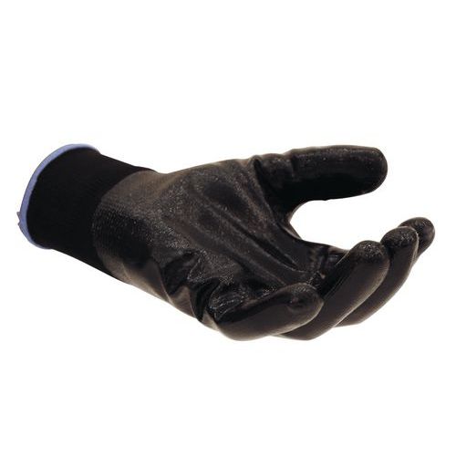- Rivestimento in nitrile sul palmo e sul dorso che garantisce una resistenza eccezionale.