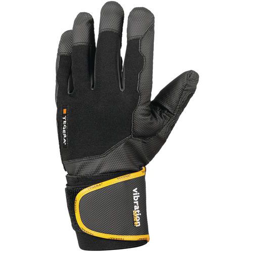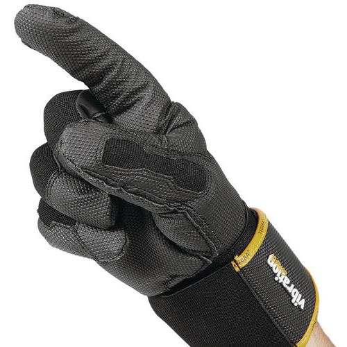 Guanto in microfibra con imbottitura VibroThan® antivibrazione EN ISO 10819. Supporto di velcro dimensionato per il sostegno del polso. Punta delle dita rinforzata e dorso antivento.