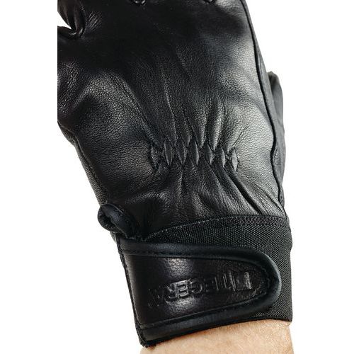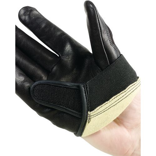 Guanto in pelle fiore capretto con trattamento di impermeabilizzazione. Dotato di chiusura con velcro sul polsino elasticizzato per una vestibilità sicura. Conforme alla norma EN ISO 11640:2012.