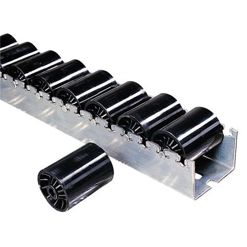- Binari a rulli in plastica: Ideali per carichi leggeri, questi binari offrono flessibilità e facilità di installazione. Sono disponibili in varie lunghezze e sono particolarmente adatti per lo stoccaggio dinamico di prodotti di peso contenuto.