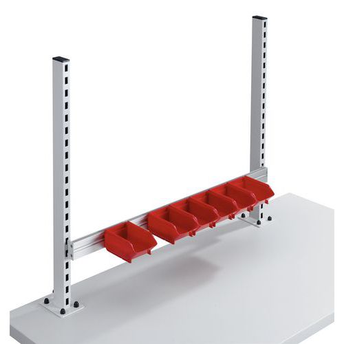 Per agganciare contenitori a becco con tacca sul lato posteriore.