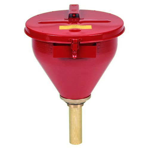 Impedisce le fuoriuscite durante il trasferimento di residui di solventi, dissolventi, oli o vernici infiammabili. Coperchio a chiusura automatica in caso di incendio. Ampia apertura in acciaio galvanizzato con rivestimento esterno in finitura epossidica durevole. Parafiamma in ottone integrato per assorbire e dissipare il calore. Favorisce lo scorrimento del liquido.