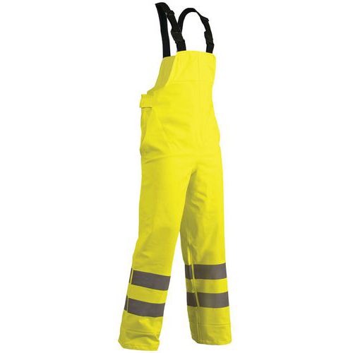 Antivento e resistente a tutta l'acqua, con cottura nastrata Dettagli: slide regolabile in vita Spalline regolabili con elastico Finitura: Orlo regolabile con bottoni Certificazione: certificazione Z per pantaloni e pantaloni EN 20471, Classe 2