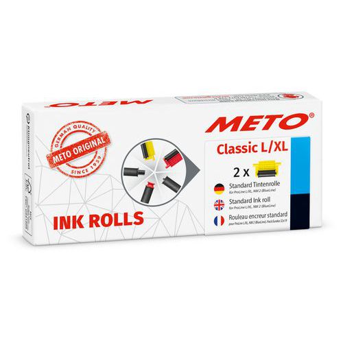 Blister contenente 2 rulli di inchiostro neri per una sostituzione facile e senza sporcare. Adatto per le taglie L/XL delle serie Meto Expert, Meto Industry, Meto Classic, così come per le preserie Eagle, ProLine e NM. 1 rullo di inchiostro è sufficiente per circa 30.000 etichette.