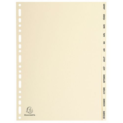| Descrizione | Intercalari color pelle da 155 g, 12 posizioni gennaio-dicembre A4, N. di divisioni: 12, Colore: Beige |