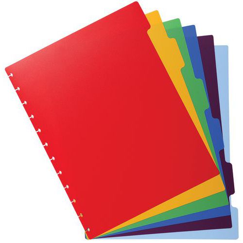 Intercalari in polipropilene colorato per portalistini ad anelli.