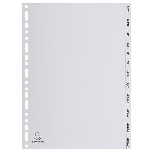 | Descrizione | Intercalari mensili in pp grigio, gennaio-dic. 12 posizioni A4, N. di divisioni: 12, Colore: Grigio |